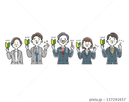グッドのハンドサインをする、複数の若い会社員の上半身アイコンセット_ベクター_カラー
