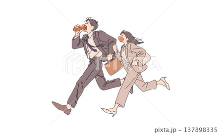 朝の出勤で慌ただしく家を出る若い共働きの夫婦