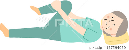 仰向けで寝ているシニアの女性のイラスト素材