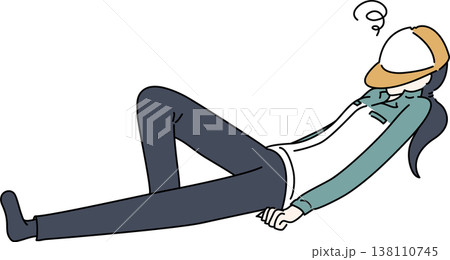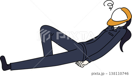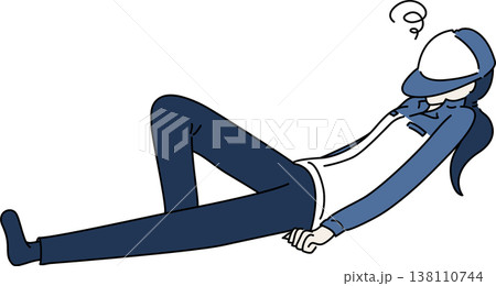 仰向けになる作業服を着た女性のイラスト 紺色の制服