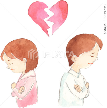 けんか後の気まずいカップルのイラスト