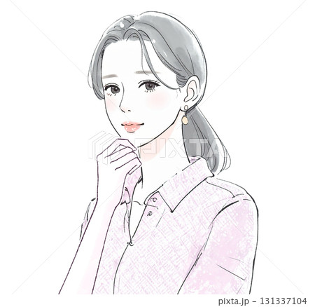水彩画・手描き風の悩む、考える、落ち込む女性・女の子のイラスト素材