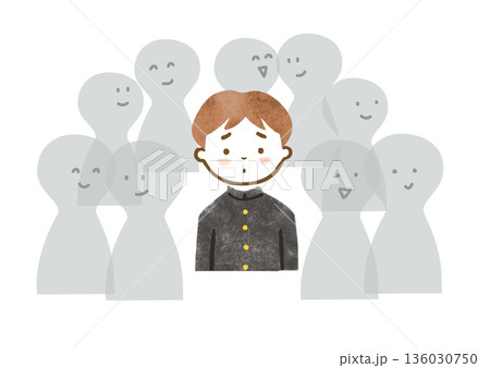 孤独を感じている制服を着た男子中学生のイラスト