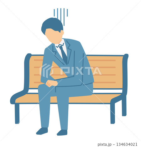 イラスト素材: ベンチに座りうなだれて落ち込むスーツ姿のビジネスマン
