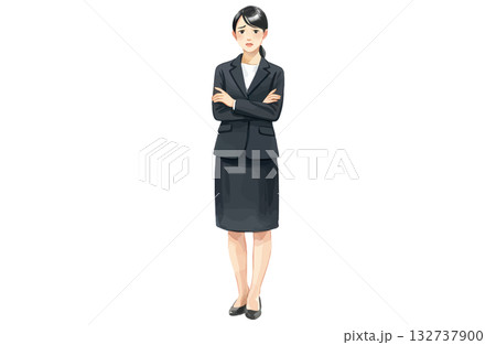 困った表情で腕組みするビジネスウーマン(全身・水彩)