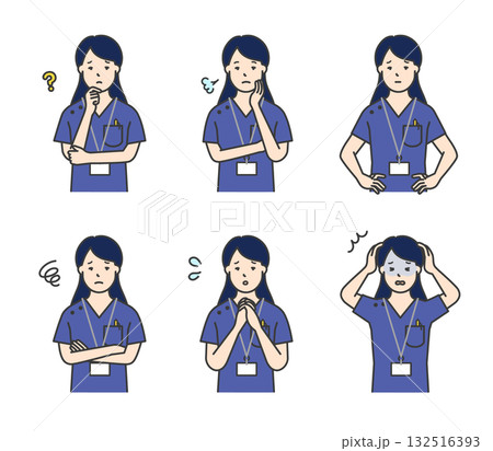 不安・困り顔の看護師のアイコンセット イラスト素材