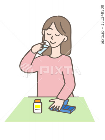薬を飲んでいる女性のイラスト