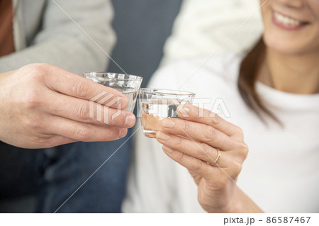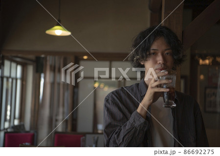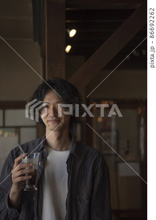 グラスを持つ日本人男性