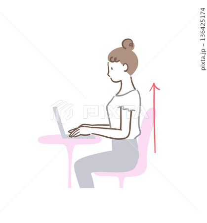 正しい姿勢で椅子に座ってパソコンを操作する女性のイラスト素材