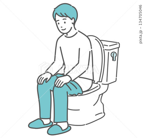 トイレに座ってリラックスしている男性のイラスト(快便・排泄・腸活)