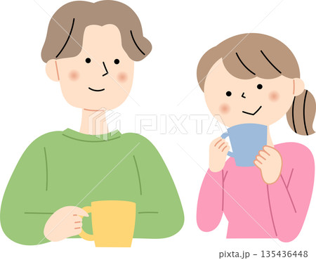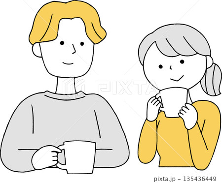 コーヒーを楽しむカップルのイラスト