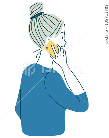 スマホで通話中の女性のイラスト