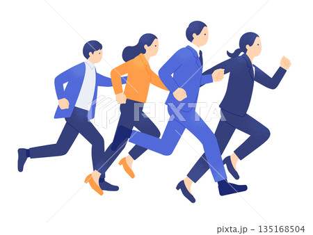 前へ進むビジネスパーソン。スピード感と団結を表す人物イラスト素材。