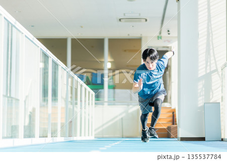 ジムで走る若い男性 撮影協力:「スポーツクラブ&サウナスパ ルネサンス 幕張24」