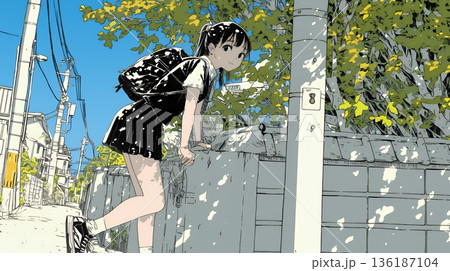 制服を着て走る学生 男女 制服 横顔 学校 全身 夏服