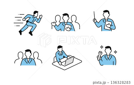 レベルアップを目指すビジネスマン シンプルでお洒落な線画イラスト