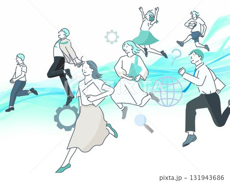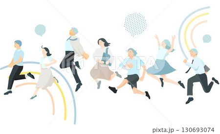 同じ方向に走る人たちのイラスト