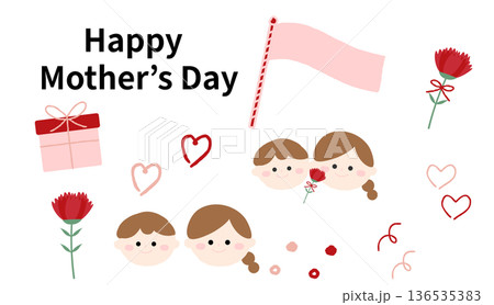 母の日のカーネーションと親子の手描きイラスト