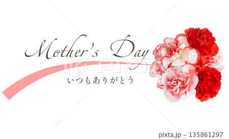 母の日の赤とピンク色のカーネーションのブーケ背景 白バック