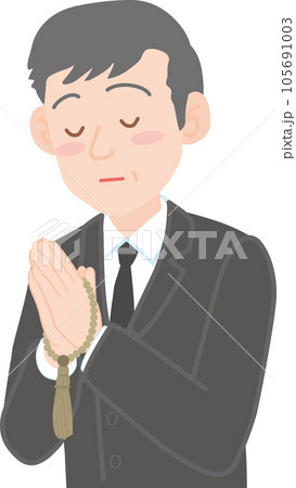 葬儀関係のイラスト_数珠を持って目を瞑り手を合わせる高齢男性