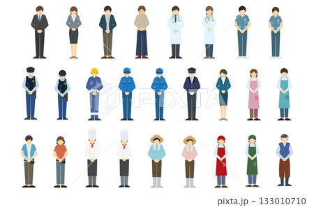 フラットイラスト:お辞儀をするざまざまな職業の人々