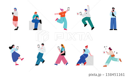 スマホを操作する人々のイラストセット