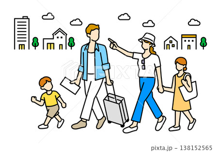 旅行に出かける家族