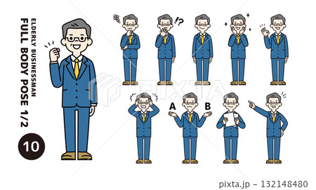 様々な表情・ポーズのシニア世代のビジネスマンの全身ベクターイラスト素材セット_カラー