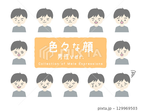 ビジネスカジュアルなミドル世代の男性の表情イラストセット