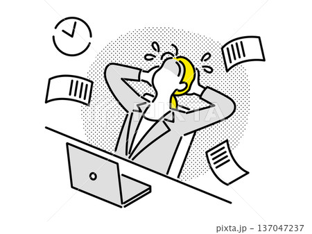 働く女性ビジネスパーソンとパソコンのシンプルイメージ イラスト素材