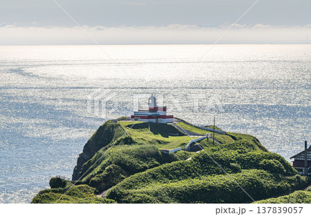 北海道小樽市 キラキラと輝く海に照らされる日和山灯台
