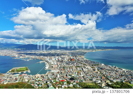 北海道 秋の青空 函館からの風景