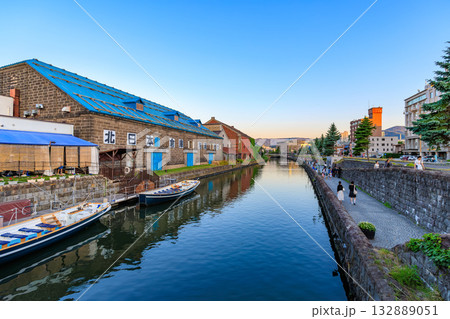 北海道小樽市 北海道屈指の人気観光地 初夏の小樽運河と倉庫群の景色