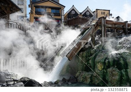 群馬県 吾妻郡草津町 草津温泉 湯路広場にある白旗源泉