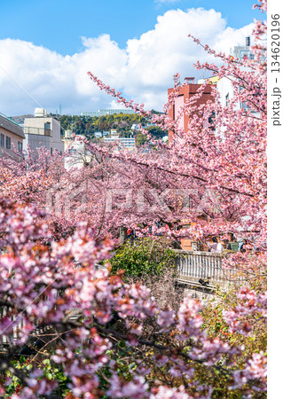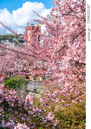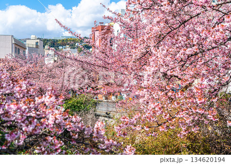 【静岡県】熱海の街に鮮やかに色づく熱海桜