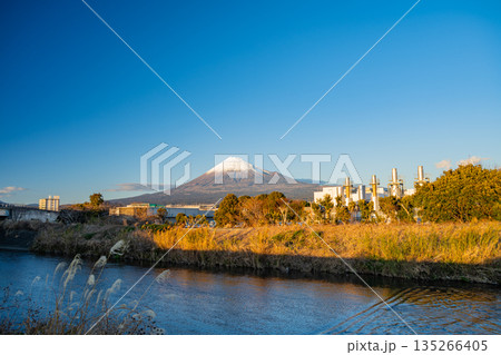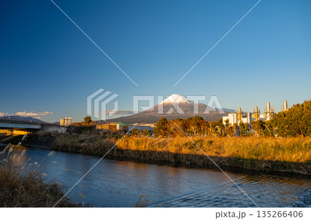 【静岡県】静岡の街並みの向こうに富士山 早朝