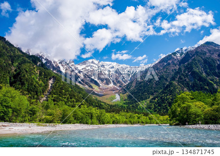 さわやか上高地『残雪の穂高連峰と清流梓川』《長野県 松本市》
