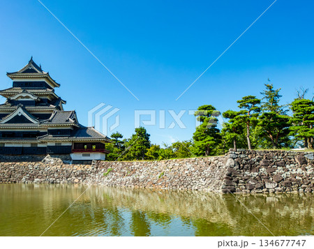 長野県松本市 松本城大天守と乾小天守と月見櫓と辰見附櫓と内堀