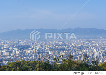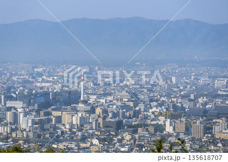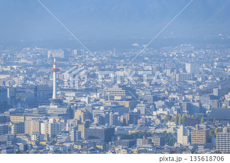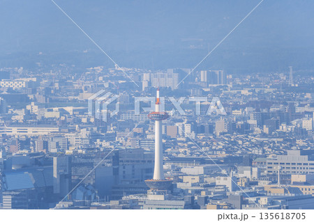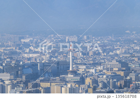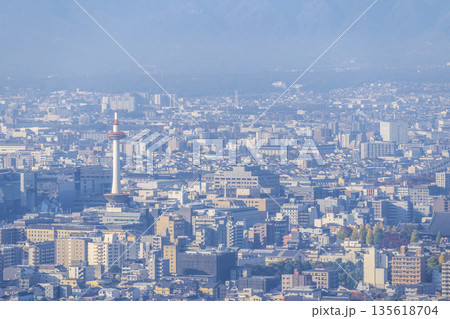 遠く京都タワーと東寺五重塔を見る京都市街地