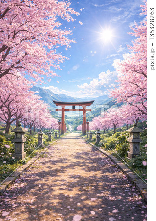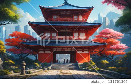 京都イメージ 古都 京都 春 桜 和 アニメ風