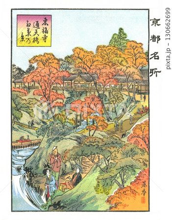 1895年4月15日発行 林基春による石版画 京都名所 東福寺 通天橋 紅葉の景