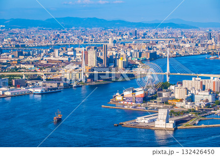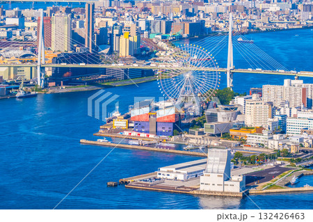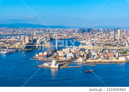 大阪府咲洲庁舎(コスモタワー)の展望台から望むベイエリアの風景