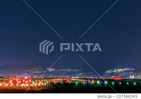 大阪国際空港(伊丹空港)の滑走路の夜景
