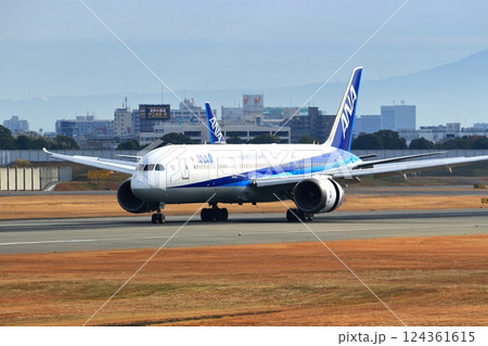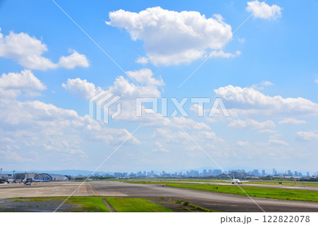 夏の大阪空港(伊丹空港) 着陸中の飛行機 大阪府豊中市
