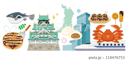 大阪 観光名所イラストセット