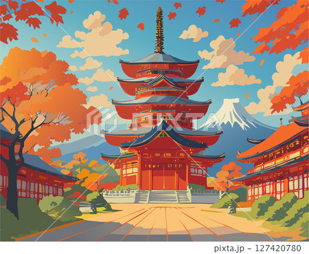 五重塔と四季の風景セット 日本旅行のコンセプト