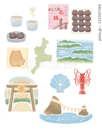 三重県の夫婦岩と青い海 シンプルで可愛らしい観光地のイラスト