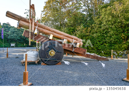 伊勢神宮・外宮に展示されている奉曳車(2026年正月)