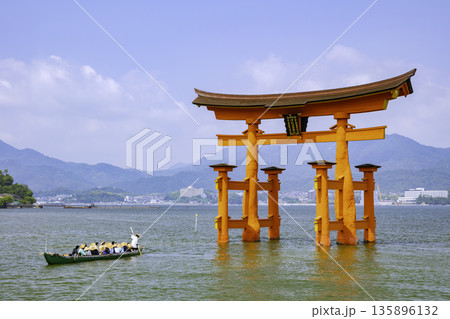 広島 宮島 の 厳島神社 の 夏 の 大鳥居 【 広島観光 の イメージ 】