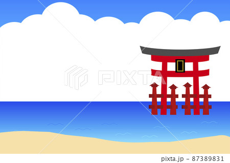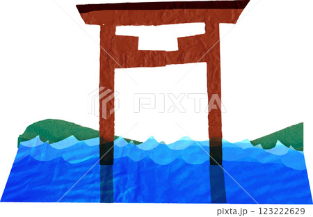 宮島観光のイメージイラスト。海に浮かぶ大鳥居。